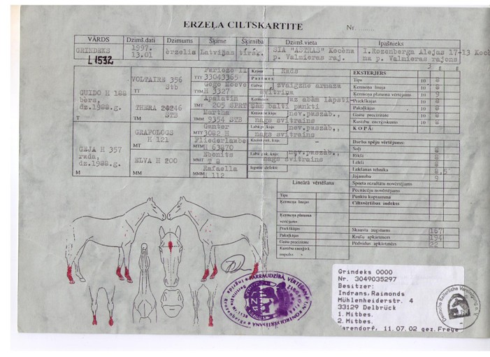 Klasse Elite, eingetragen im Hengstbuch in Lettland →
