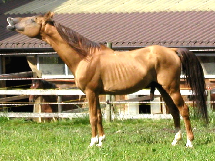 Karabaghhengst Serko *2010, hellgoldfuchsfalb, Stm. 151 cm, alle Karabagh-Großeltern in Aserbaidschan geboren, gekört März 2013 HB 1 beim Verband der Pony- und Pferdezüchter Hessen in Alsfeld. Sehr umgänglich, kompakt, Trab und Korrektheit mit 8 bewertet, Decktaxe: 800 Euro + Nebenkosten 2014 - 2017 Vater dreier Prämienfohlen der Spezialpferderassen in Alsfeld, 2015 Vater eines Siegerfohlens der Spezialpferderassen in Alsfeld beim Verband der Pony- und Pferdezüchter Hessen in Alsfeld. Filme: https://www.youtube.com/watch?v=SBo95A8rqyQ und https://www.youtube.com/watch?v=68lRNK4jFmM&feature=youtu.be |