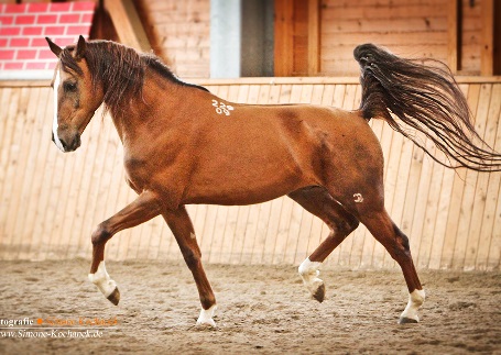 *2008, aufgewachsen in Russland, Goldfuchs deckt im Natursprung (auch TG erhältlich) Preis auf Anfrage Registernummer.: D003308 (russ. Don- Stutbuch - Bd. 19, Seite 45, Nr. 5861) Züchter: Zimovnikovsky Stud, Teilnahme am Ritt Moskau - Paris 2012 Standort: Schneppenbach / Hunsrück: Tel.: 06544 99 03 45 / c.weissbach(at)t-online.de Foto: Simone Kochanek |